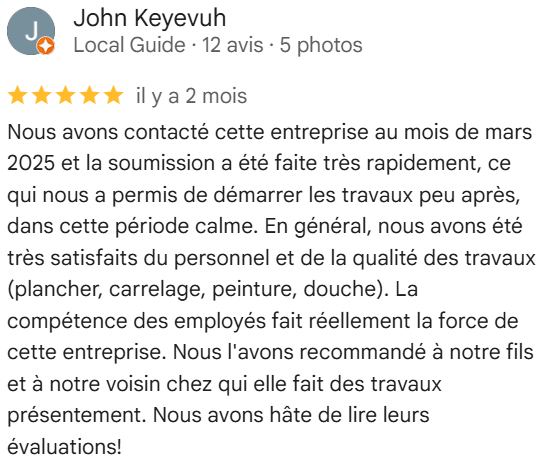 Grâce à notre gestion interne et une planification rigoureuse, vous recevez un échéancier clair dès le départ, respecté du début à la fin. Pas de chantier qui s’étire inutilement, ni de mauvaises surprises.